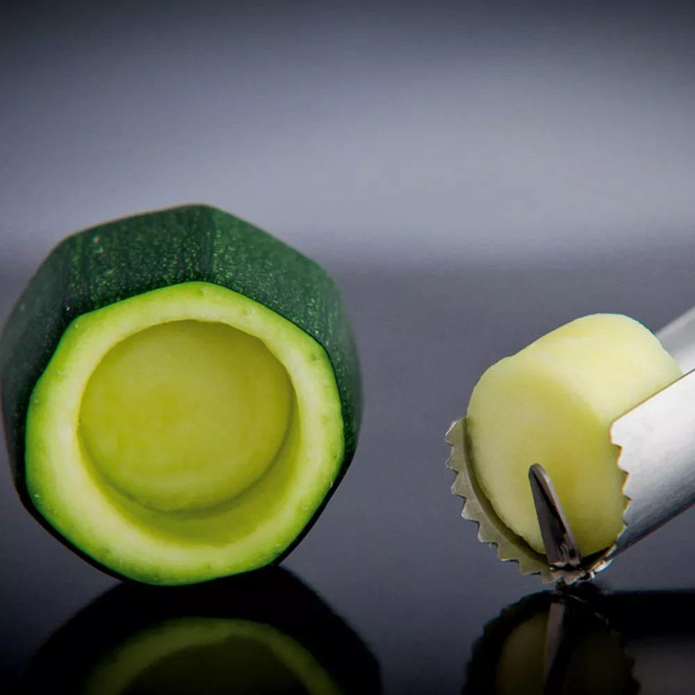 - Manuelles Gerät zum Ausstechen des Kerns oder zum Entfernen von Ansätzen von Obst und Gemüse im Handumdrehen.