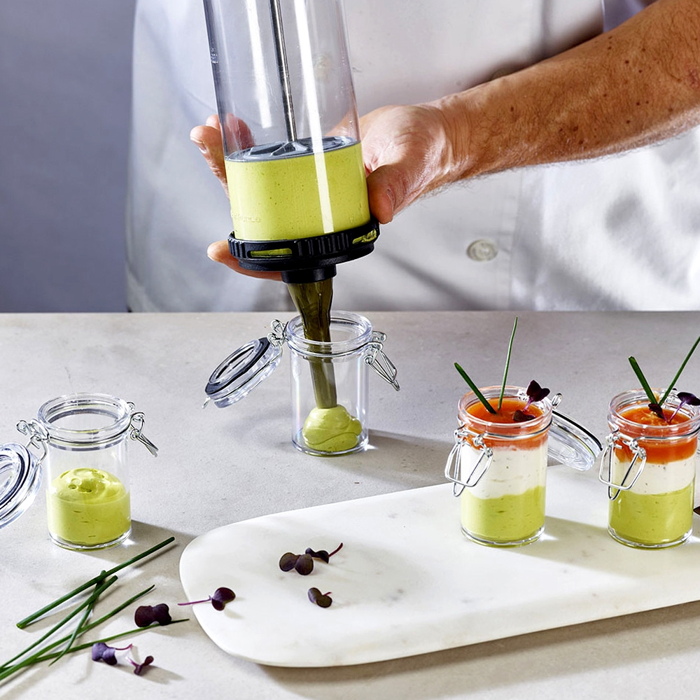 Gebäckdüsen aus TRITAN. Perfekt glatter Kegel für garantierte Hygiene. Die verstärkten Zähne an den ausgefallenen Düsen sorgen für hohe Genauigkeit. Die Düsen sind lang genug, damit sie leichter in die Tasche gesteckt werden können und sie besser sichtbar sind. Sie alle passen zu LE TUBE von de Buyer und sind spülmaschinenfest.