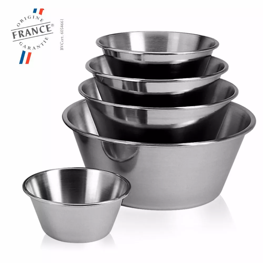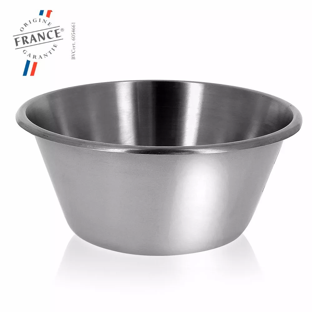 Profi-Schüssel – sowohl hinsichtlich des Volumens als auch der Qualität und der Dicke des Edelstahls. Mit offenem gerolltem Rand: für die Handhabung ohne Verletzungsgefahr und eine einwandfreie Hygiene. In polierter Ausführung.