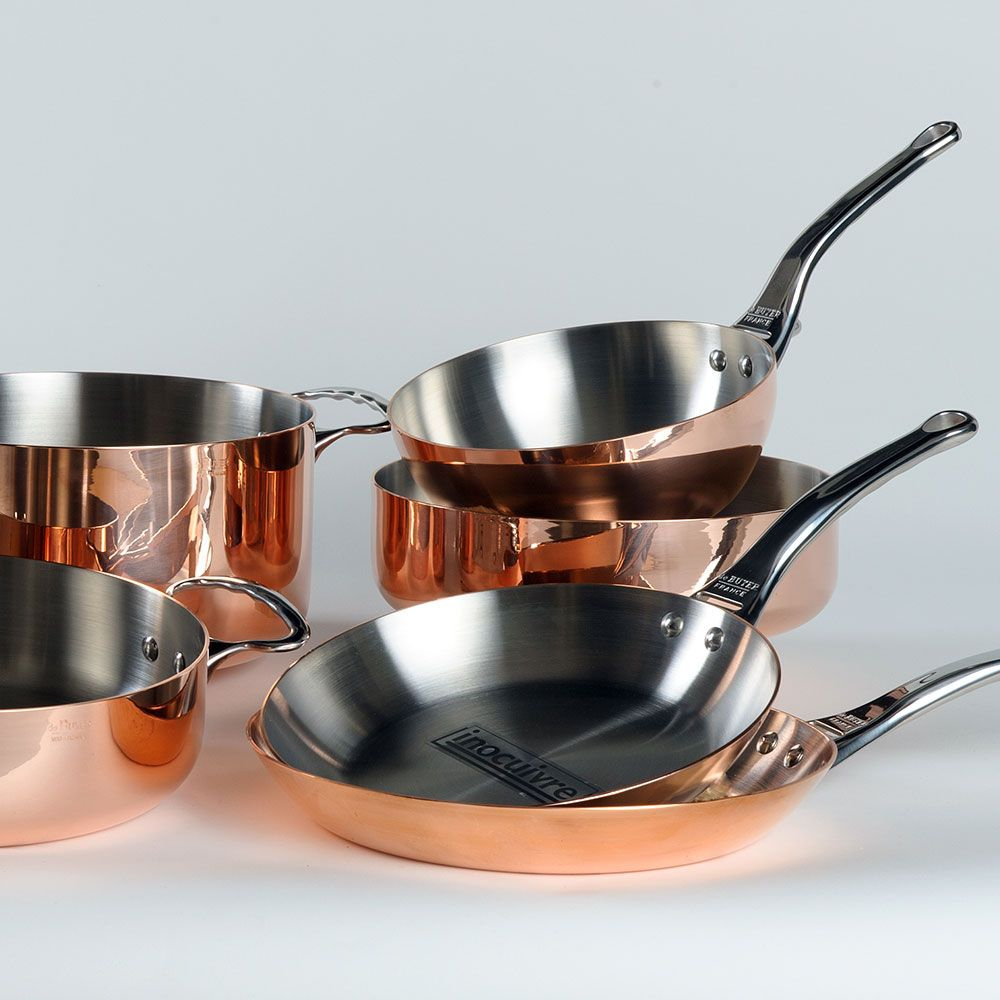 de Buyer Inocuivre – Nicht induktionsgeeignet. Für alle anderen Herdarten geeignet. Kupfer ist der beste Hitzeleiter, um beim Kochen den vollen Geschmack zu erhalten. Dieses Material verteilt die Hitze schnell und gleichmäßig: Nicht nur auf dem Boden, sondern auch auf den Wänden; ein Heizkreislauf entsteht, und die Zutaten werden gleichmäßig gekocht. Ideal für empfindliche Gerichte, für Saucen und allgemein zum Einkochen von Flüssigkeiten.