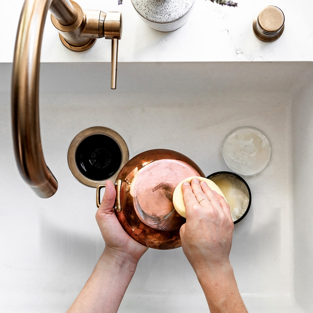 Die spezielle Polierpaste von de Buyer ist einfach zu verwenden. Legen Sie einfach eine kleine Menge auf einen weichen, mit heißem Wasser angefeuchteten Schwamm und reiben Sie in kreisenden Bewegungen die zuvor gewaschenen Utensilien. Mit der Polierpaste de Buyer können Sie den ursprünglichen Glanz Ihres Kochgeschirrs und anderer Utensilien aus Kupfer wiederherstellen und ihr Leuchten bewahren.