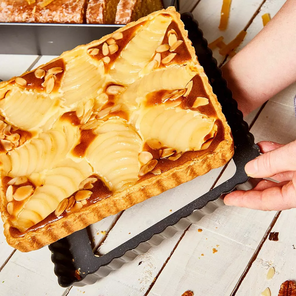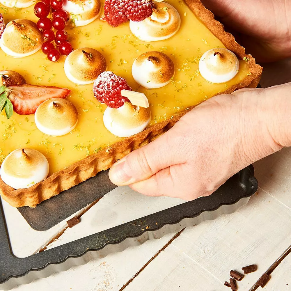 de Buyer – Geriffelte quadratische Tortenform mit abnehmbarem Boden – Diese Kuchenform mit Riffelrand und quadratischer Form wird zum Backen von Tarts und Quiches verwendet. Eisen ist der ideale Wärmeleiter und sorgt für perfekte Karamelisierung & goldbraun-knuspriges Gebäck. Mit einer beständigen, antihaft PFOA-freie Beschichtung, wird das Eisen vor Oxidation geschützt. Fetten Sie die Form vor dem Gebrauch.