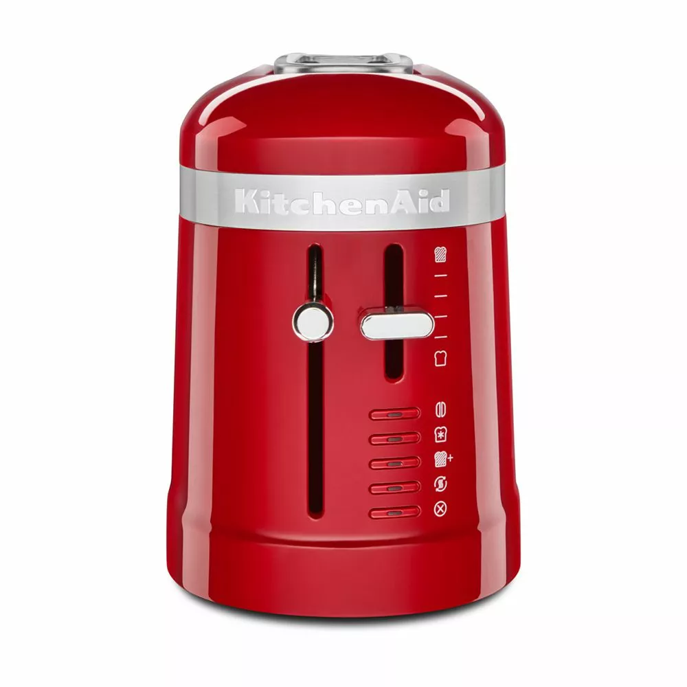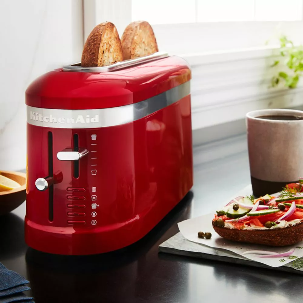Genießen Sie Brote vom Bäcker oder aus der eigenen Küche. Dann brauchen Sie den Design Toaster von Kitchen aid mit genug Platz für alle möglichen Scheibenformate und -größen, ein knuspriges Ergebnis. Kleine Brotscheiben und aufgeschnittene Brötchen werden hoch angehoben und lassen sich so leichter entnehmen, ohne dass Sie sich die Finger verbrennen. Gefrorene Brötchen und Backwaren können Sie ganz leicht auftauen. Ihr Toast ist fertig, Sie aber noch nicht? Wärmen Sie Ihr Brot ganz einfach mit einem einzigen Knopfdruck auf.
