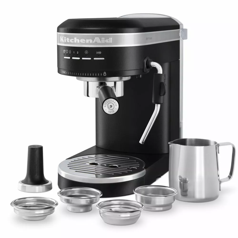 Die Espressomaschine von KitchenAid erweckt die Kunst der Espressozubereitung zu Hause zum Leben. Sie können authentische Espresso-Shots sowie beliebte Getränke auf Espresso-Basis wie Latte, Cappuccino, Macchiato, Café Americano, Flat White und sogar Affogato (mit Eiscreme) zaubern. Alle werden vorbeikommen und sich diese kompakte und elegante Espressomaschine mit Metallgehäuse ansehen wollen. Dank der zwei intelligenten Temperatursensoren, der italienischen Pumpe mit 15 bar und Vorinfusion können Sie einen vollmundigen, aromatischen Espresso mit Crema zubereiten. Fühlen Sie sich mit dem Siebträger aus Edelstahl, dessen flacher Boden gleichmäßiges und stabiles Tampern ermöglicht, wie ein Profi. Einfacher oder doppelter Espresso? Wählen Sie ganz einfach mit einem einzigen Knopfdruck.
