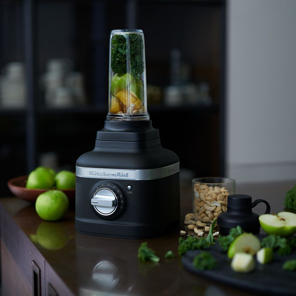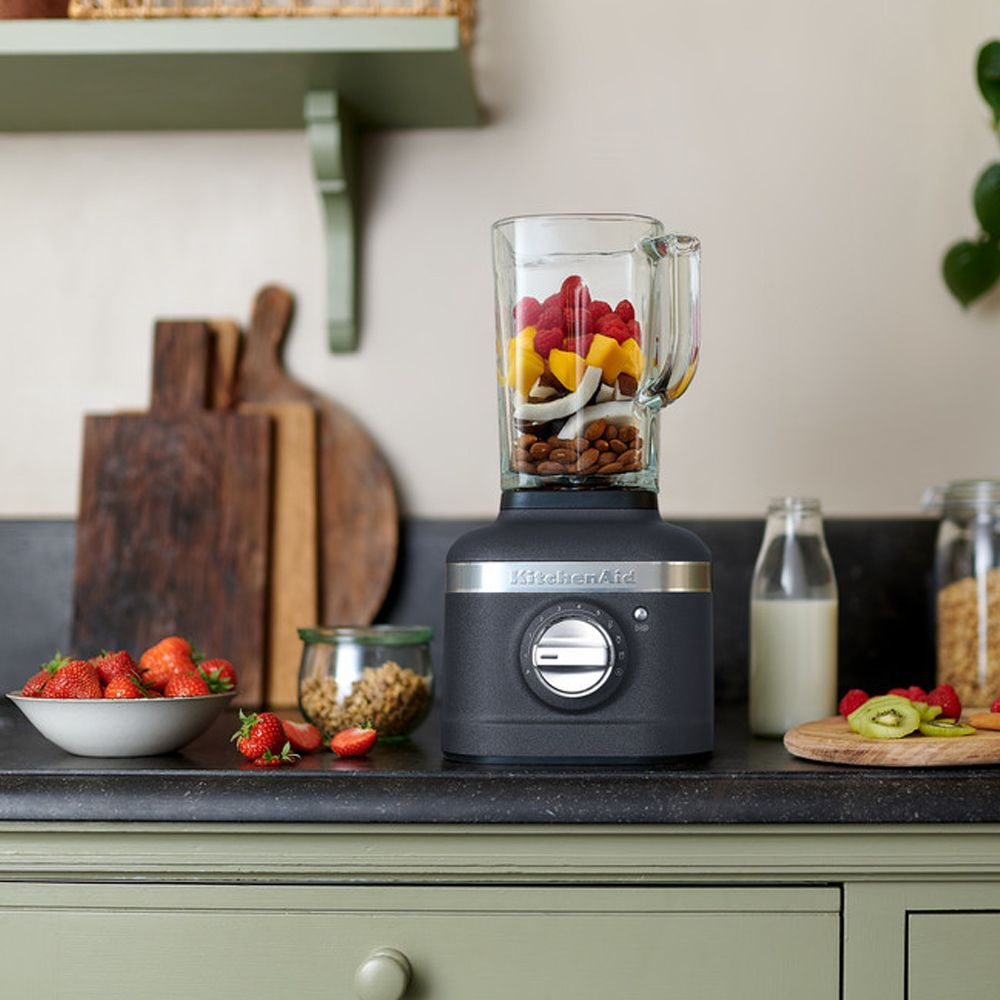 Mit dem K400 Standmixervon KitchenAid können Sie mühelos die härtesten Zutaten zerkleinern und ihnen eine glatte Konsistenz für den perfekten Geschmack geben. Lassen Sie Ihrer Kreativität in der Küche freien Lauf! Seine Basis und der Drehknopf aus Spritzgussmetall machen diesen Standmixer besonders langlebig. Er ist schwer, robust und bereit für alle Rezepte, die Ihnen einfallen. Seine solide Bauweise erwecken Vertrauen. Erreichen Sie jedes Mal ein gleichmäßiges Mixergebnis. Bei dem 3-teiligen System kommen drei Aspekte zusammen: die einzigartige asymmetrische Klinge, der Behälter mit Riffelungen und der adaptive IntelliSpeed-Motor, der den Inhalt ermittelt, um eine optimale Geschwindigkeit zu gewährleisten. Mixen Sie ohne Bedenken harte Zutaten wie Mandeln, Chia-Samen, Eiswürfel, Ingwer oder nahrhafte, ballaststoffreiche Gemüse und Blattgemüsesorten. Sie erhalten glatte, gleichmäßige Texturen mit perfekt ausgewogenen Aromen. Köstlich!