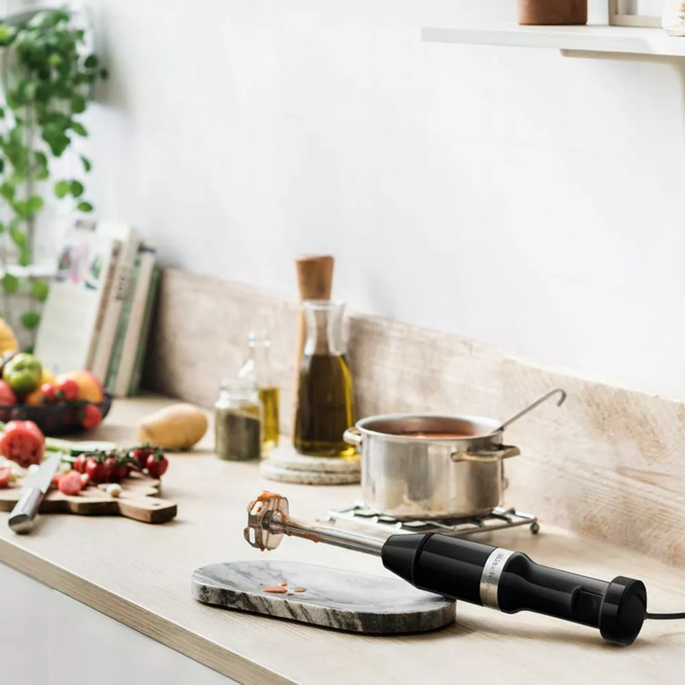 Der vielseitige Stabmixer von KitchenAid eignet sich perfekt für echte Macher mit einer Leidenschaft fürs Kochen. Bereiten Sie mit dem flexiblen und einfach zu kontrollierenden Gerät in kürzester Zeit Saucen, Suppen, Desserts und mehr zu.