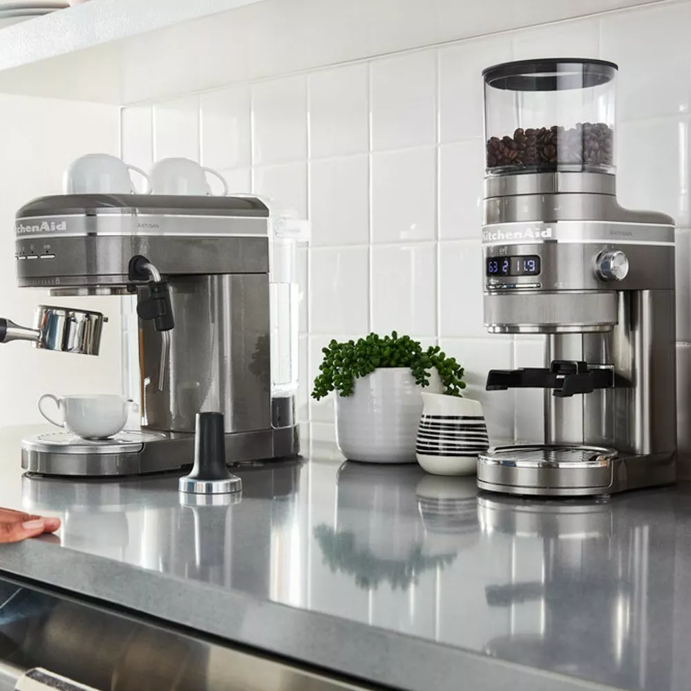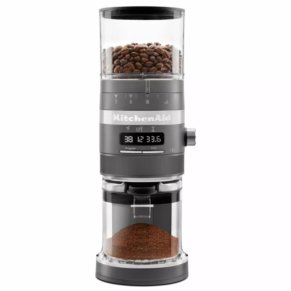Erzielen Sie mit der KitchenAid Kaffeemühle einen außergewöhnlich genauen Mahlgrad für Ihren selbst gebrühten Kaffee. Mit dieser kompakten und eleganten Maschine sind konsistente Mahlgrade für alle Brühmethoden garantiert. Wählen Sie aus 70 präzisen Einstellungen, von grob für French Press bis fein für Espresso, und genießen Sie den wunderbaren Geschmack. Mahlwerke aus rostfreiem Stahl in Profiqualität sorgen für eine hervorragende Mahlung. Dank der automatischen Dosiertechnologie passt sich die Kaffeemühle automatisch an und sorgt für die richtige Menge und Konsistenz für Ihre Brühmethode und die Anzahl der Shots oder Tassen. Genießen Sie sauberes, ordentliches Mahlen und bewahren Sie nicht verwendete Bohnen für das nächste Mal auf. Die elegante und kompakte Kaffeemühle ist eine ideale Ergänzung für die Espressomaschine (separat erhältlich).
