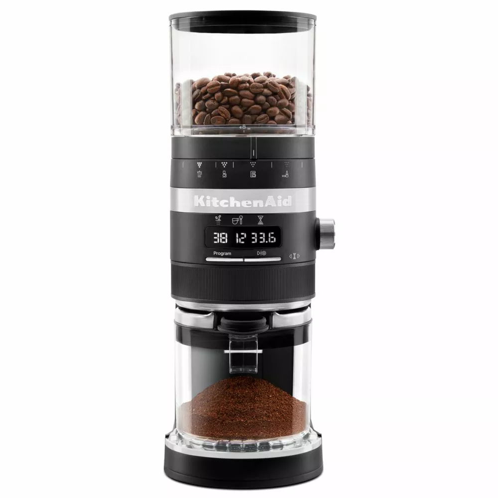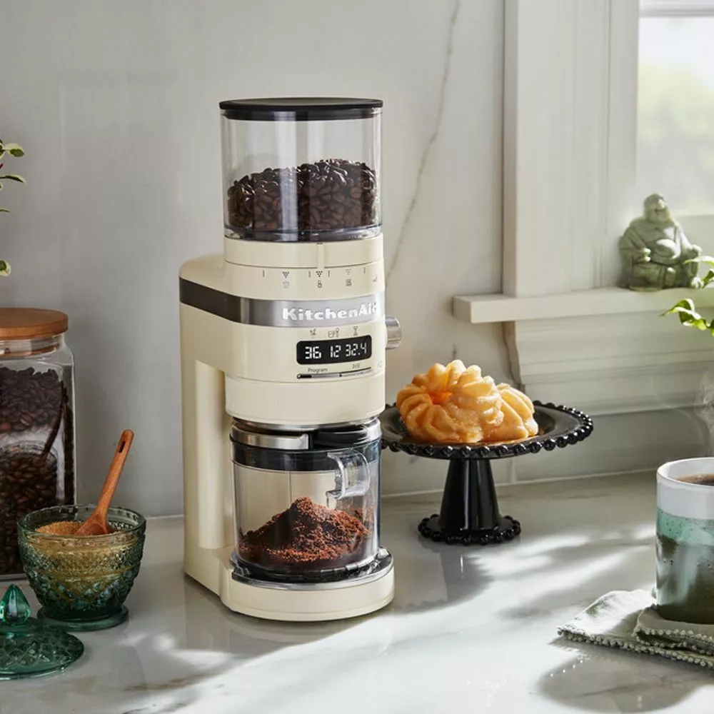 Erzielen Sie mit der KitchenAid Kaffeemühle einen außergewöhnlich genauen Mahlgrad für Ihren selbst gebrühten Kaffee. Mit dieser kompakten und eleganten Maschine sind konsistente Mahlgrade für alle Brühmethoden garantiert. Wählen Sie aus 70 präzisen Einstellungen, von grob für French Press bis fein für Espresso, und genießen Sie den wunderbaren Geschmack. Mahlwerke aus rostfreiem Stahl in Profiqualität sorgen für eine hervorragende Mahlung. Dank der automatischen Dosiertechnologie passt sich die Kaffeemühle automatisch an und sorgt für die richtige Menge und Konsistenz für Ihre Brühmethode und die Anzahl der Shots oder Tassen. Genießen Sie sauberes, ordentliches Mahlen und bewahren Sie nicht verwendete Bohnen für das nächste Mal auf. Die elegante und kompakte Kaffeemühle ist eine ideale Ergänzung für die Espressomaschine (separat erhältlich).