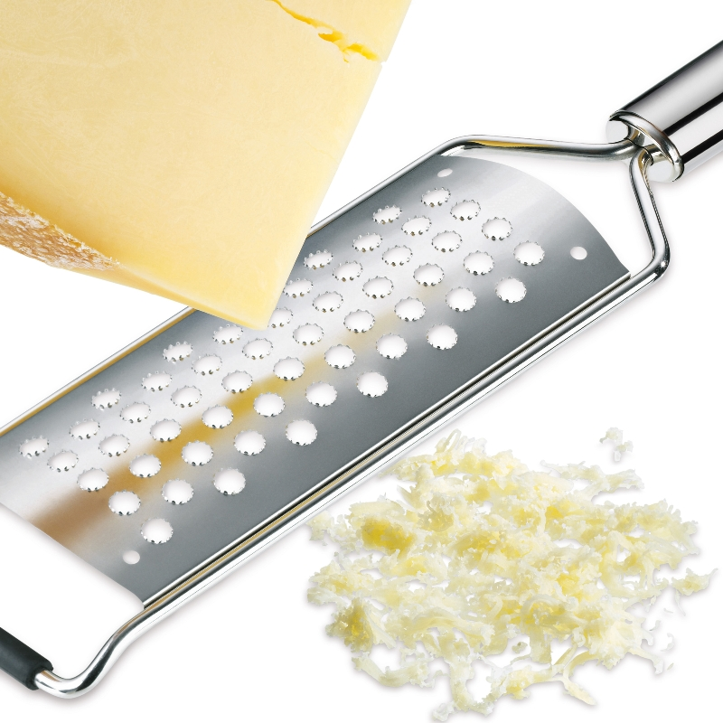 Hinter der Serie Rondo steht ein umfassendes Sortiment verschiedenster Küchenhelfer für den Alltag in der Küche – vom Schaumlöffel bis zur Knoblauchpresse. Auch für Hobel-, Reibe- und Raspelarbeiten in der Küche gibt es nun Helferlein in dieser Serie.