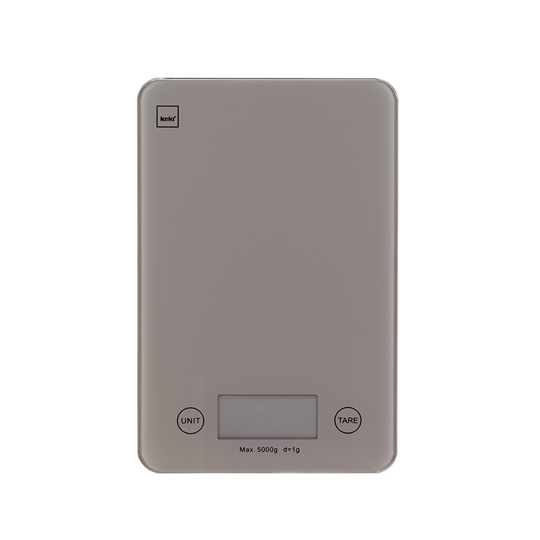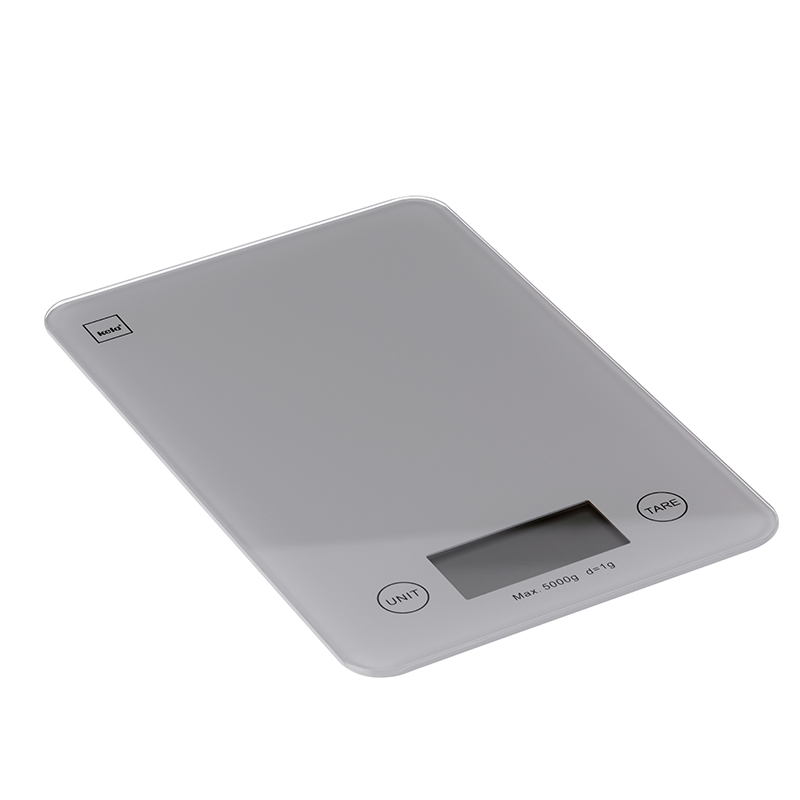 Küchenwaage aus Glas in der Farbe Opalgrau, Tragkraft 5 kg, mit 1-g-Feineinteilung, 15 x 23 cm, Höhe 1,5 cm, batteriebetrieben, (Lieferung mit Batterien)