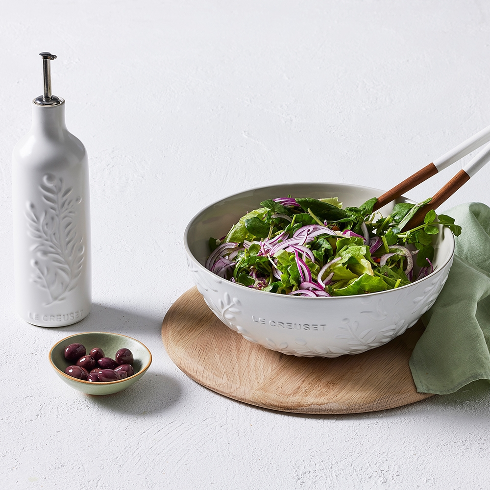 Die funktionelle und schöne Schüssel der Olive Branch Collection eignet sich sowohl als klassische Servierschale am Tisch als auch als Obstschale auf der Küchentheke. Perfekt für große, frische Salate, die am Tisch gereicht werden. Die limitierte Olive Branch Collection ist mit einem raffinierten Olivenzweig-Motiv geprägt und mit einem matten, zarten Farbfinish versehen – inspiriert von den sonnengetränkten Feldern der Provence.