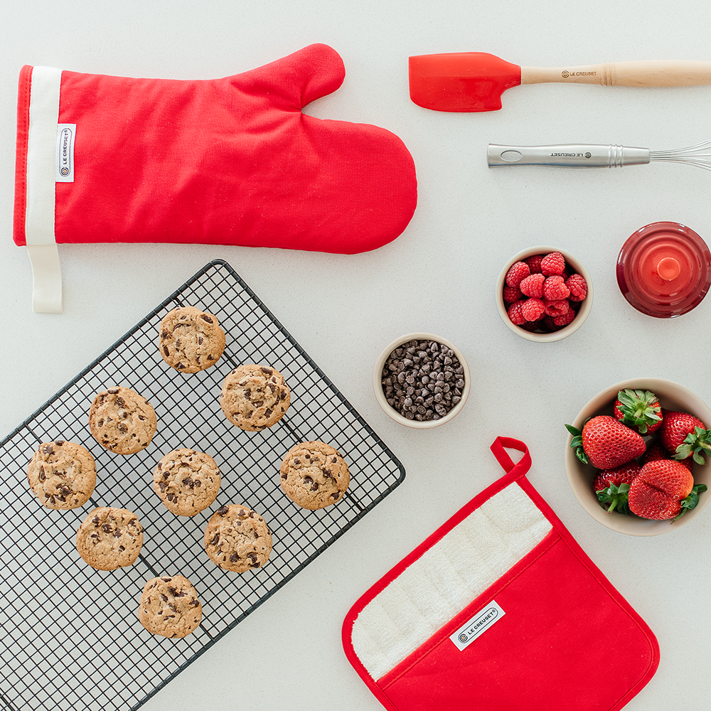Gut geschützt. Der Le Creuset Handschuh hat einen extra langen Ärmel, damit die Arme auch im Backofen geschützt sind. Die Le Creuset-Küchentextilien sind aus hochwertigem, fleckschutzimprägnierten Baumwoll-Canvas und sind somit wasser-, öl- und dampfabweisend.