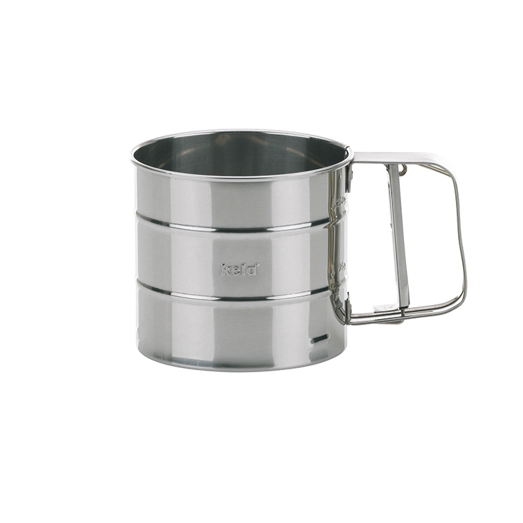 Das hochwertige Einhand-Mehlsieb FRIDA ist aus Edelstahl. Es eignet sich auch bestens zum Bestreuen von Kuchen mit Puderzucker.