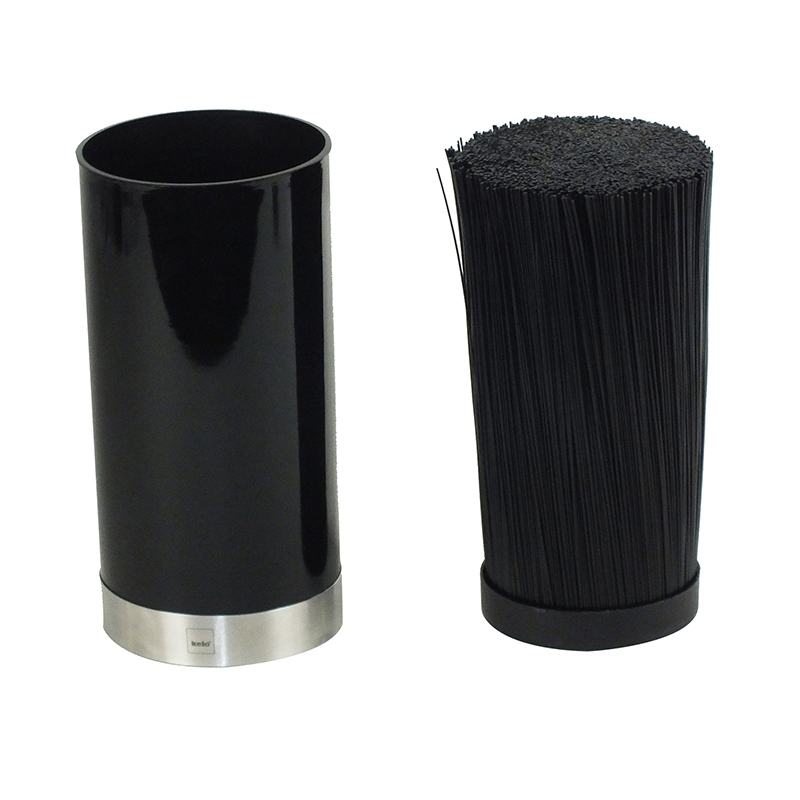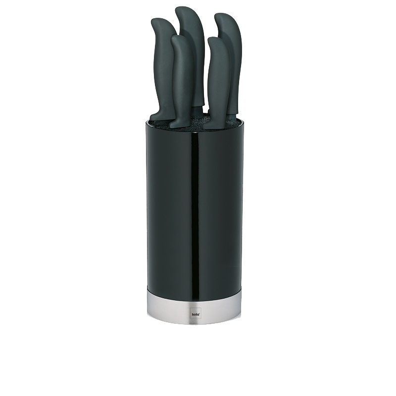 Messerblock Acida, PP-Kunststoff schwarz, 22,5 cm hoch, 11 cm Ø. Höhe mit Messer: 34,5 cm.