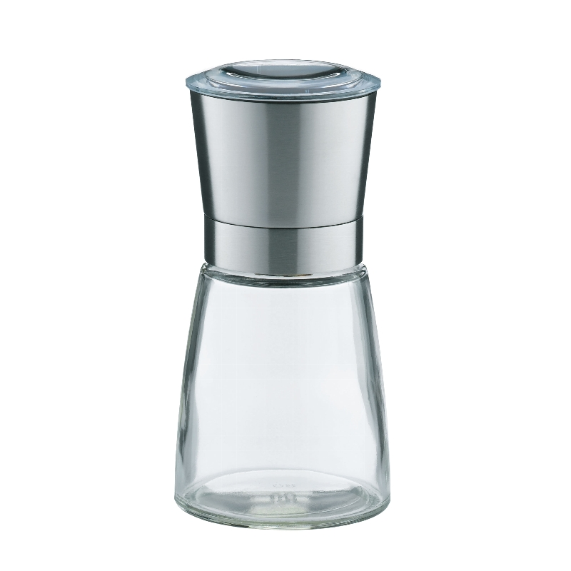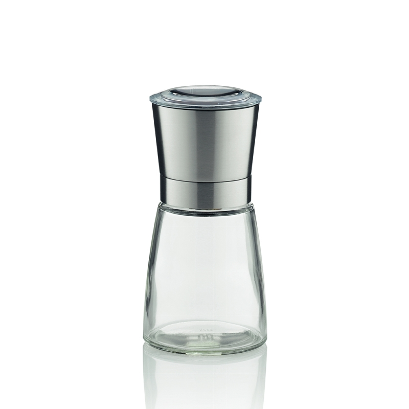 Salz- und Pfeffermühle Molino aus Glas mit Keramikmahlwerk und Edelstahlring. 200 ml. Höhe 13,5 cm.