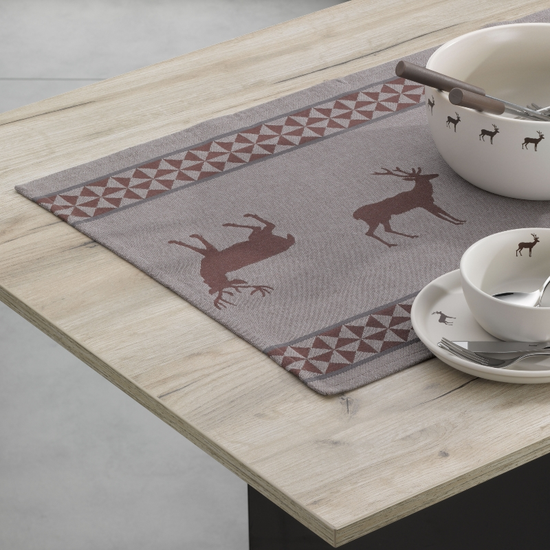 Dieser Tischläufer im schönen Mahagonibraun ergänzt die bestehende Kela-Serie Henrik ideal. Der dekorative Tischläufer besteht aus 100% Baumwolle, gewebt. Aus dieser Serie finden Sie bei Kela eine ganze Reihe an passenden Accessoires, wie zum Beispiel Textilien (Topfhandschuh, Geschirrtücher, Schürzen, Topflappen), Tischsets und eine Tischdecke und auch Fonduezubehör. Alles in allem eine runde Sache. Wir wünschen viel Spaß beim nächsten Henrik-Fondueabend. Lieferung ohne abgebildeter Dekoration.