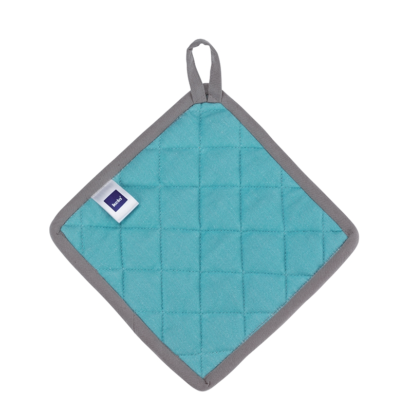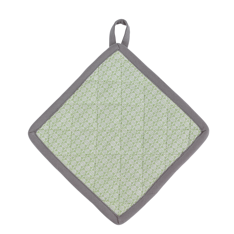 Dieser Topflappen mit einem dezenten Eckenmuster in Pastellgrün und einer einfarbigen Rückseite (Pastelltürkis) ist Teil einer großen Textilserie von Kela, in welcher Sie auch passende Geschirrtücher, Topfhandschuhe und Küchenschürzen finden, farblich toll aufeinander abgestimmt. Waschbar bis 40° C. Mit Aufhängeschlaufe und hochwertig vernäht.